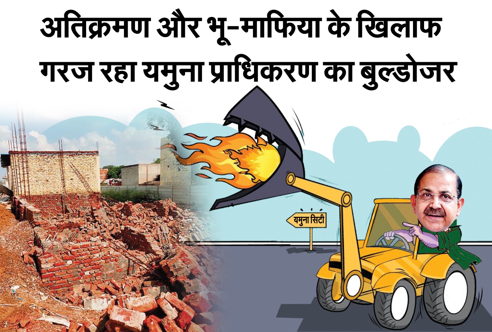 यमुना प्राधिकरण क्षेत्र में बाबा का बुलडोजर गरज रहा है। यीडा CEO डॉ. अरुणवीर सिंह के नेतृत्व में अवैध निर्माण और अतिक्रमण करने वालों के खिलाफ लगातार सख्त कार्रवाई की जा रही है। बुलडोजर की कार्रवाई से भू-माफिया और क्षेत्र में अवैध कॉलोनी बसाने वाले कोलोनाइजर में दहशत है। अतिक्रमण के खिलाफ जारी इस मुहिम से क्षेत्र में विकास का रास्ता प्रशस्त हो रहा है और पुरानी रूकी हुई परियोजनाओं को रफ्तार मिली है। प्राधिकरण द्वारा लगभग 500 एकड़ जमीन अतिक्रमण मुक्त कराया गया जिसकी कीमत लगभग 1867 करोड़ है।