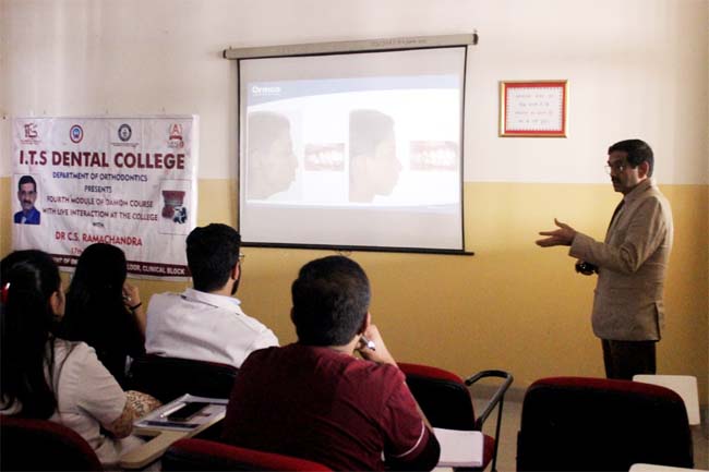 गाजियाबाद। दिल्ली-मेरठ रोड़ स्थित आईटीएस डेंटल कॉलेज मुरादनगर में ऑर्थोडॉन्टिक्स एण्ड डेंटोफेशियल ऑर्थोपेडिक्स विभाग के द्वारा छात्रों एवं दंत चिकित्सकों को प्रशिक्षित करने के लिए डेमन कोर्स के चौथे एवं अंतिम मॉड्यूल का आयोजन किया गया। जिसमें 30 वर्षो से अधिक अनुभवी प्राप्त वक्ता डॉ सीएस रामचंद्र के द्वारा इस मॉड्यूल को संबोधित किया गया। कार्यक्रम के दौरान उन्होंने डेमन सिस्टम के बारे में विस्तृत जानकारी छात्रों को दी। कार्यक्रम में इससे संबंधित लेक्चर, केस चर्चाओं और लाइव वीडियो के प्रदर्शन की मदद से डेमन सिस्टम समझाया गया।