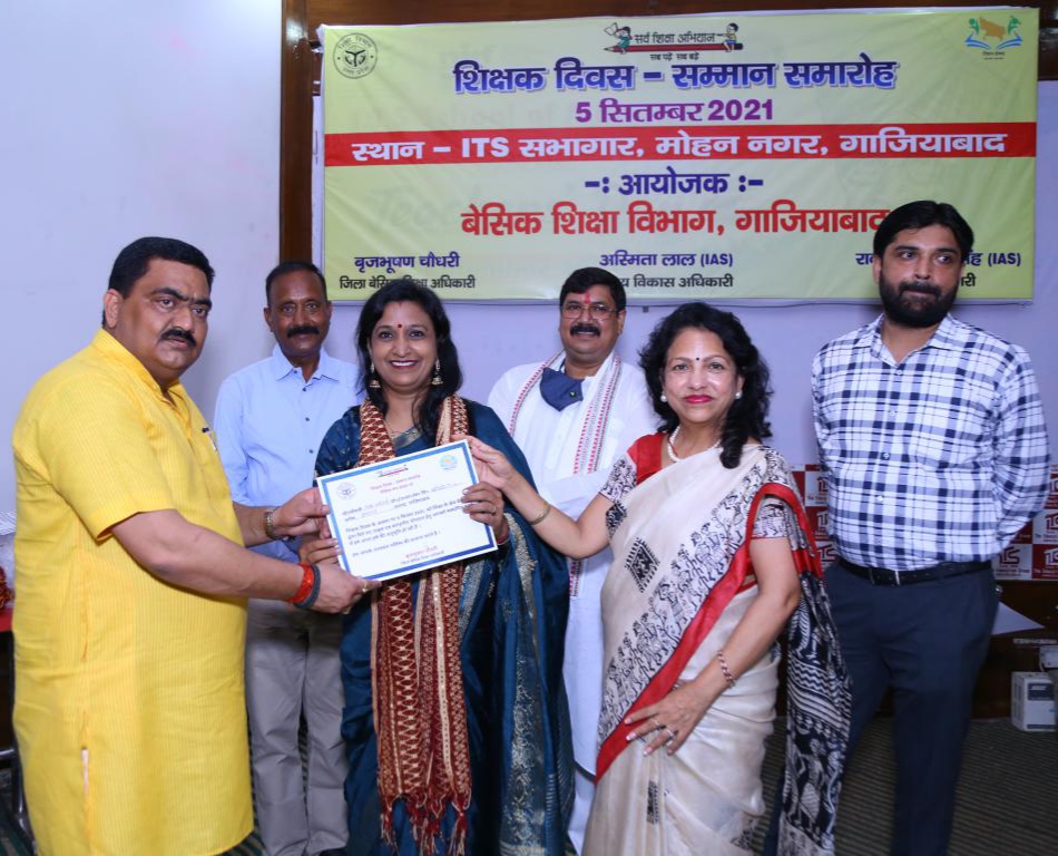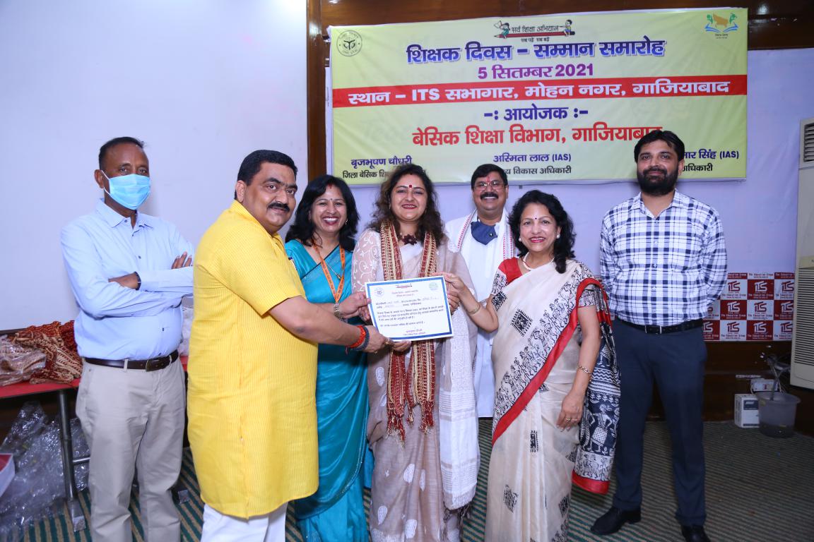 गाजियाबाद। शिक्षक दिवस पर प्राथमिक विद्यालय में उत्कृष्ट शिक्षण कार्य करने वाले 75 शिक्षकों रविवार को आईटीएस कॉलेज मोहन नगर में सम्मानित किया गया। बेसिक शिक्षा विभाग द्वारा आयोजित शिक्षक सम्मान समारोह में मुख्य अतिथि मुरादनगर विधायक अजीत पाल त्यागी, डॉ शिखा संयुक्त सचिव राज्य सभा तथा विशिष्ट अतिथि जिला बेसिक शिक्षा अधिकारी बृज भूषण चौधरी रहे। कार्यक्रम का शुभारंभ अतिथियों द्वारा दीप प्रज्वलित कर किया गया।