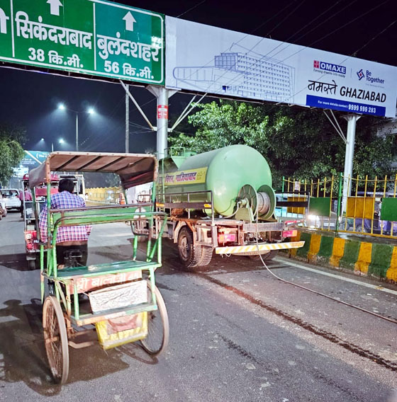 गाजियाबाद। वायु प्रदूषण की रोकथाम के लिए नगर निगम द्वारा रात्रि में सड़कों को धूल मुक्त करने के लिए लगातार अभियान चलाया रहा है। म्युनिसिपल कमिश्नर विक्रमादित्य मलिक ने सड़कों को धूल मुक्त करने के लिए चलाए जा रहे विशेष अभियान का रात्रि में जायजा लिया। म्युनिसिपल कमिश्नर ने मौके पर मशीनों से सड़कों की धूल साफ करने और पानी का छिड़काव लगातार किए जाने के निर्देश दिए। म्युनिसिपल कमिश्नर खुद ही इसकी मॉनिटरिंग भी कर रहे है। इसी क्रम में उन्होंने मुख्य मार्गों पर रात्रि भ्रमण करते हुए व्यवस्था का जायजा लिया।