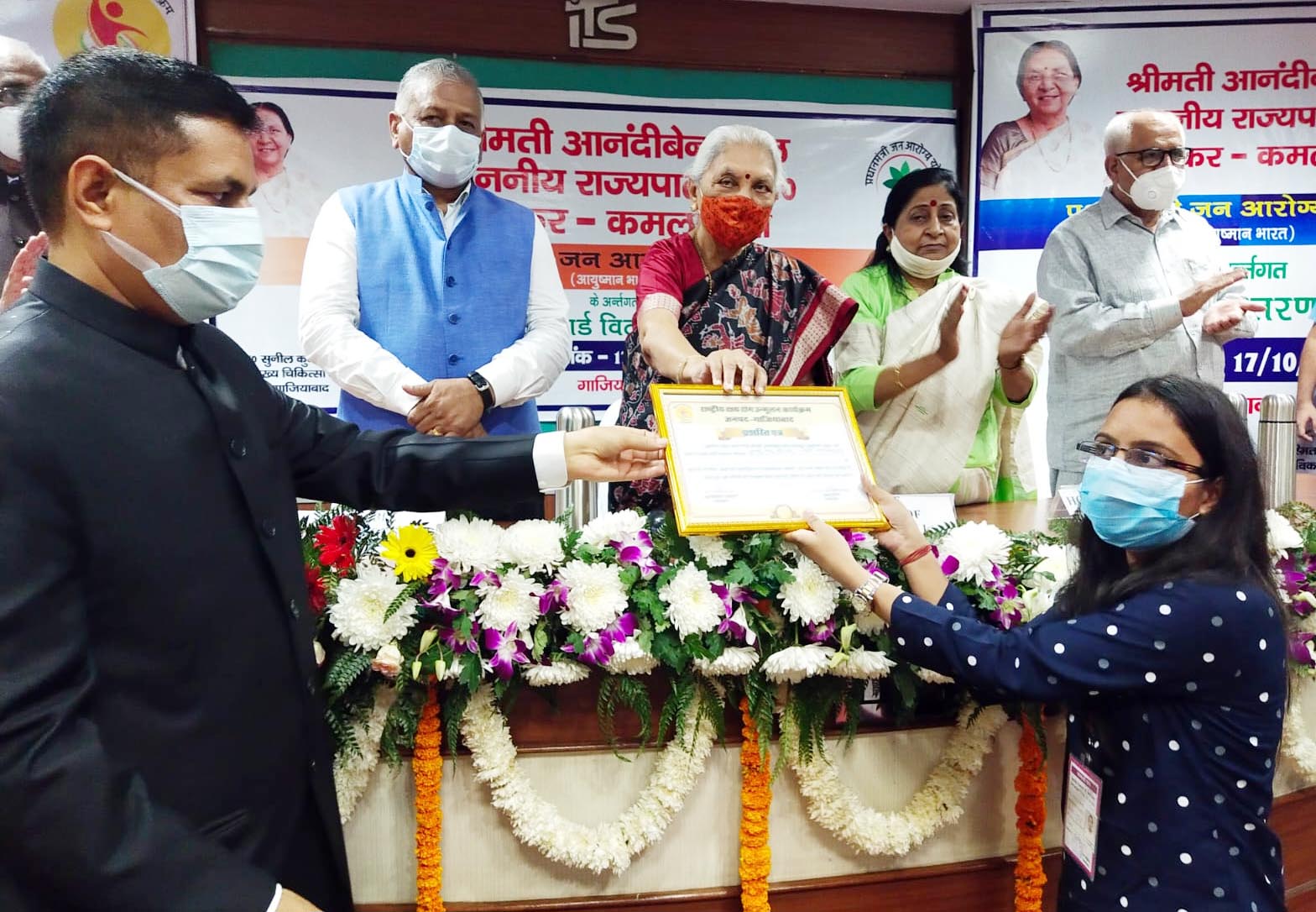 प्रदेश की राज्यपाल आनंदी बेन पटेल ने 6 कार्यक्रम में शिरकत की। मोहननगर स्थित आईटीएस कॉलेज में जहां आंगनबाड़ी कार्यकत्रियों को सम्मानित किया। राज्यपाल आनंदी बेन पटेल ने केंद्रीय मंत्री जनरल वीके सिंह, मेयर आशा शर्मा, जिलाधिकारी राकेश कुमार सिंह, एसएसपी पवन कुमार, सीडीओ अस्मिता लाल, नगर आयुक्त महेंद्र सिंह तंवर, जिला पंचायत अध्यक्ष ममता त्यागी, एकेटीयू के कुलपति प्रोफेसर विनीत कंसल, चौधरी चरण सिंह विश्व विद्यालय मेरठ के कुलपति प्रोफेसर नरेंद्र कुमार तनेजा, परियोजना निदेशक पीएन दीक्षित, सीएमओ डॉ. भवतोष शंखधर, एडीएम सिटी विपिन कुमार आदि अधिकारियों की मौजूदगी में कार्यक्रम के दौरान प्रमाण पत्र भी वितरित किए। राज्यपाल ने केंद्रीय मंत्री जनरल वीके सिंह के साथ महिला कैदियों से बातचीत की। इसके बाद दुहाई स्थित वृद्धाश्रम में काफिला पहुंचा। राज्यपाल ने वृद्धाश्रम का निरीक्षण किया। आश्रम में रह रहे बुजुर्गों के साथ बैठक की। इसके बाद वह गौतमबुद्ध नगर के लिए रवाना हो गई।