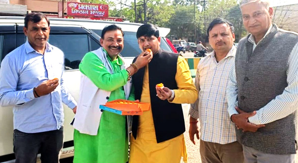 गाजियाबाद। यूपी में भाजपा की जीत की खुशी में चारों और खुशी का माहौल दिखाई दिया। गुरूवार को वरिष्ठ भाजपा नेता एवं गगन एनक्लेव अध्यक्ष रघुनंदन भारद्वाज ने आशु पंडित एवं अन्य आरडब्ल्यूए टीम के कार्यकर्ताओं को मिठाई खिलाकर खुशी का इजहार किया। सुबह से ही परिणाम जानने के लिए लोग समाचार चैनलों पर जमे रहे। इंटरनेट मीडिया पर भी सुबह से शाम तक लोग पल पल की अपडेट लेते रहे। जो लोग मतगणना में शामिल होने गए, उनको बार बार फोन कर भी लोगों ने जानकारी ली। रघुनंदन भारद्वाज ने बताया कि यह जीत असत्य पर सत्य की जीत है। जनता ने इस बार भी वोट देकर यह साबित कर दिया है, कि भाजपा सबका साथ, सबका विकास, सबका विश्वास की नीति पर कायम है। भाजपा में न तो किसी का तुष्टिकरण होता है और ना ही उपेक्षा की जाती है। प्रधानमंत्री नरेन्द्र मोदी एवं मुख्यमंत्रीय योगी आदित्य नाथ द्वारा देश, राज्य, एवं शहर के विकास के लिए किए गए निरंतर कार्य को जनता ने सराहा है। इसीलिए भारी मतों से जनता ने अपना आशीर्वाद देकर दोबारा से अतुल गर्ग एवं भाजपा सरकार को दिया है। इस दौरान आरडब्लूए टीम के सभी सदस्य आरपी एस चौहान, गोपाल, योगेश त्यागी, अरविंद शर्मा, मनोज जैन, डॉ राजीव तिवारी, सुभाष गर्ग आदि उपस्थित रहे।