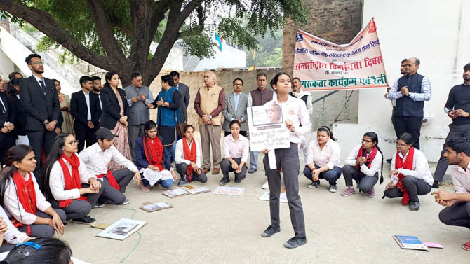 मुख्य अतिथि नूतन द्विवेदी सचिव, जिला विधिक सेवा प्राधिकरण दिव्यांग बच्चों को व्हील चेयर वितरित करते हुए हरी झंडी दिखाकर दिव्यांगता के प्रति जागरूकता फैलाने के लिए निकली रैली को रवाना किया। उसके पहले स्टूडेंट्स ने उन्हें नुक्कड़ नाटक करके दिखाया। कार्यक्रम के विशिष्ट अतिथि आशुतोष डायरेक्टर, न्याय एवं विधि मंत्रालय भारत सरकार और संस्थान के सचिव करुणाकर शुक्ला, कोषाध्यक्ष अनादि सुकुल ने भी कार्यक्रम में हिस्सा लिया।