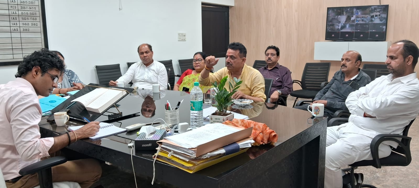 बैठक में वार्ड संख्या 100 से संजय सिंह, वार्ड संख्या 98 से मनीष चौधरी, वार्ड संख्या 81 से मंजुला गुप्ता, वार्ड संख्या 99 से अभिनव जैन, वार्ड संख्या 79 से मीना भंडारी, वार्ड संख्या 57 से कपिल त्यागी, वार्ड संख्या 87 से निर्मला त्यागी व अन्य जनप्रतिनिधि उपस्थित हुए इंदिरापुरम के विकास कार्यों को लेकर भी बारी-बारी अपना विषय नगर आयुक्त के समक्ष रखा। नगर निगम को इंदिरापुरम हैंडोवर हो जाए, जिससे की वहां पर विकास कार्य लगातार होते रहे जिसके लिए क्षेत्रीय जनप्रतिनिधि गण लगातार प्रयासरत हैं। नगर निगम के अधिकारी भी इंदिरापुरम हैंडोवर के लिए पूरी तैयारी कर रहे हैं।