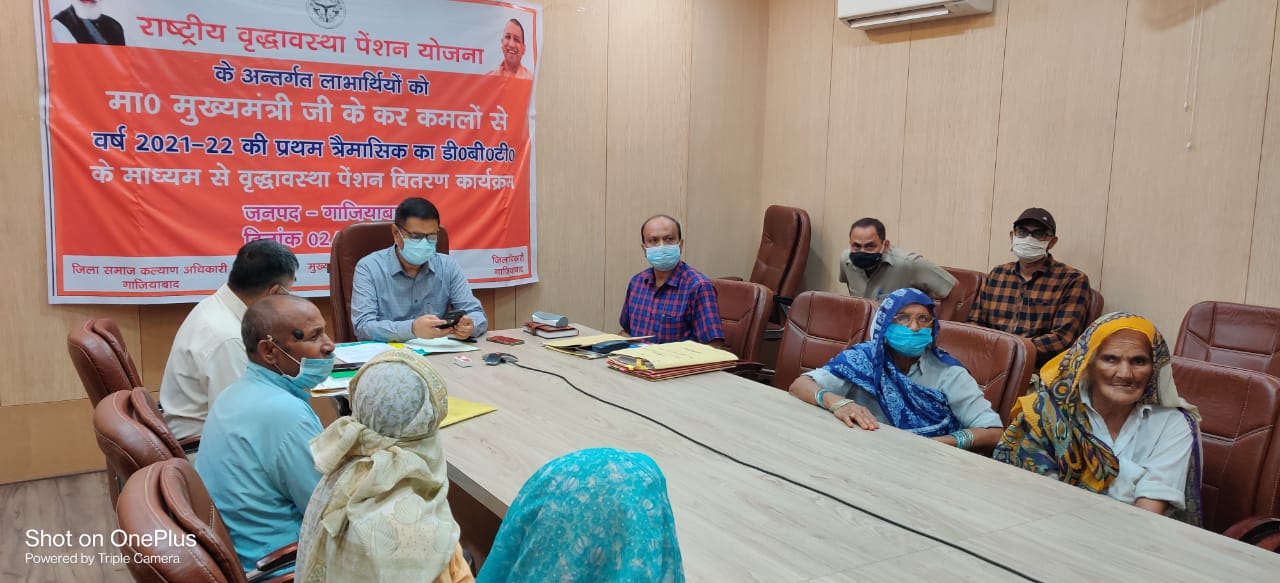 गाजियाबाद। राष्ट्रीय वृद्धावस्था पेंशन योजना के तहत जिले के 13,115 पेंशन धारकों के बैंक खाते में ऑनलाइन 1 करोड़ 96 लाख 725 रुपए भेजी गई। गुरूवार को लखनऊ में मुख्यमंत्री योगी आदित्यनाथ ने वीडियो कॉन्फ्रेंसिंग के जरिए सुबह 11 बजे वर्चुअल संवाद किया। मुख्यमंत्री के वर्चुअल संवाद के चलते कलेक्ट्रेट स्थित एनआईसी में जिलाधिकारी राकेश कुमार सिंह ने सीडीओ अस्मिता लाल,जिला समाज कल्याण अधिकारी नदीम सिद्दीकी एवं सदर तहसील के ग्राम अटौर,मोदीनगर तहसील के ग्राम त्यौडी-7,ग्राम सकलपुरा एवं लक्ष्मी गार्डन लोनी के वृद्धावस्था पेंशन लाभार्थियों ने मुख्यमंत्री के वर्चुअल संवाद कार्यक्रम में भाग लिया। जिलाधिकारी राकेश कुमार सिंह ने बताया कि जिले के 13,115 लाभार्थियों के बैंक खातों में 1 करोड़ 96 लाख 725 लाख रुपए पेंशन धनराशि भेजी गई। प्रदेश के समाज कल्याण विभाग द्वारा संचालित राष्ट्रीय वृद्धावस्था पेंशन योजना के तहत प्रदेश के 5.21 लाख नए लाभार्थियों की स्वीकृति एवं 55 लाख 77 हजार लाभार्थियों को वित्तीय वर्ष-2021-22 की पहली त्रिमासिक पेंशन 8.36 करोड़ 55 लाख रुपए डीबीटी के माध्यम से लाभार्थियों के खाते में मुख्यमंत्री द्वारा भेजे जाने के चलते लाभार्थियों से वर्चुअल संवाद किया गया। प्रमुख सचिव समाज कल्याण के निर्देशानुसार जिले के 13,115 लाभार्थियों को पेंशन के रूप में 1 करोड़ 96 लाख 725 रुपए धनराशि बैंक खातों में भेजी गई।जिले से 5 बुजुर्ग महिला एवं पुरूष को मुख्यमंत्री का लाइव कार्यक्रम का संवाद वीडियो कॉन्फ्रेंसिंग के जरिए दिखाया गया। बैंक खातों में ऑनलाइन पेंशन की किश्त वितरित की गई। वहीं,लाभार्थियों को संबोधित भी किया।