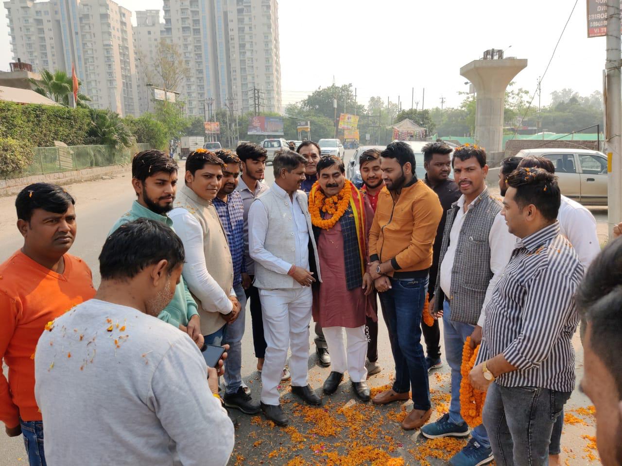 गाजियाबाद लौटने पर ब्रिज बिहार में योगेश त्रिपाठी का हुआ जोरदार स्वागत