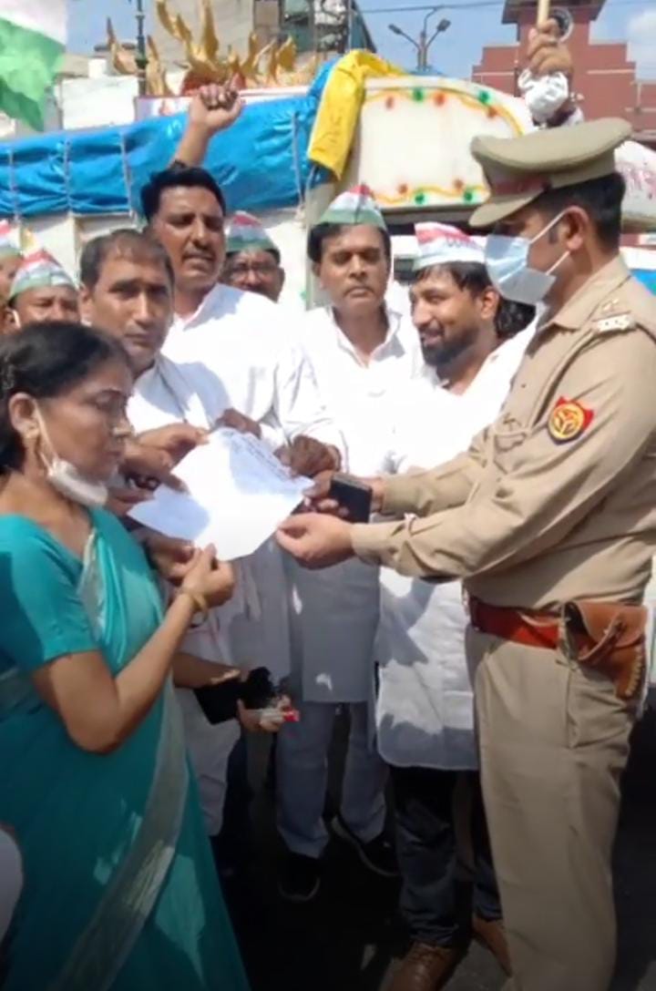 महानगर अध्यक्ष लोकेश चौधरी ने कहा उत्तर प्रदेश के अंदर जबसे योगी सरकार बनी है पूरे प्रदेश में किसान, व्यापारी और मजदूर दुखी है। सरकार किसानों का नरसंहार कर किसानों के चल रहे शांतिप्रिय आंदोलन को कुचलना चाहती है। उक्त नरसंहार को सरकार के गृह राज्य मंत्री के बेटे ने किया है।मगर किसानों की आवाज को सरकार दबा नही पाएगी। किसानों के समर्थन में कांग्रेस उतर आर्ई है। इस नरसंहार में मुख्यमंत्री को अपने पद से इस्तीफा दे देना चाहिए। उन्होंने कहा किसानों की बुलंद आवाज हमारी सबकी नेता प्रियंका गांधी की तुरंत रिहाई की मांग करते हुए पीडि़त परिवारों से मिलवाया जाए और इसकी जांच सुप्रीम कोर्ट के जजों से कराई जाए। प्रदर्शन के दौरान हीरालाल जाटव, कमलेश कुमारी एडवोकेट, हाजी खुर्शीद खान ,नसीम खान, अंशु कुमार,पार्षद जाकिर सैफी, कुलभूषण मोनू ,सचिन कितनोरिया, नवीन कुमार बोले, बाबूराम शर्मा ,प्रतिपाल सिंह, राजीव गुप्ता, प्रेमप्रकाश चीनी, अनुज चौधरी, रमेश मित्तल, जगतपाल, सरवन जैन, एहसान सिद्दीकी, उमेश शर्मा, अकरम कादरी, जगत सिंह बिष्ट, विजय कुमार गोयल पार्षद, शिवम चौधरी, विजय कुमार आदि लोग उपस्थित थे। वहीं प्रियंका