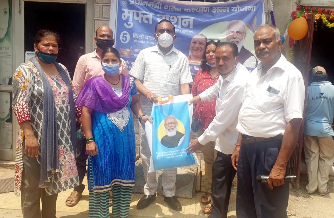 गाजियाबाद। प्रधानमंत्री गरीब कल्याण जन योजना के तहत गुरूवार को सेक्टर-1 वैशाली के पार्षद मनोज गोयल द्वारा राशन वितरित किया गया। करीब 200 लोगों को फ्री गेहूं और चावल बांटा गया। बड़ी संख्या में आए लोगों ने प्रधानमंत्री नरेंद्र मोदी और मुख्यमंत्री योगी आदित्यनाथ को इस योजना के लिए बधाई दी तथा प्रदेश में चल रही भाजपा सरकार की सराहना की। मुख्यमंत्री द्वारा माफियाओं गुंडे मवाली के खिलाफ अभियान चलाया जा रहा है, जिसकी हर व्यक्ति प्रशंसा कर रहा है। क्षेत्र में हुए विकास के कार्य की भरपूर प्रशंसा की।