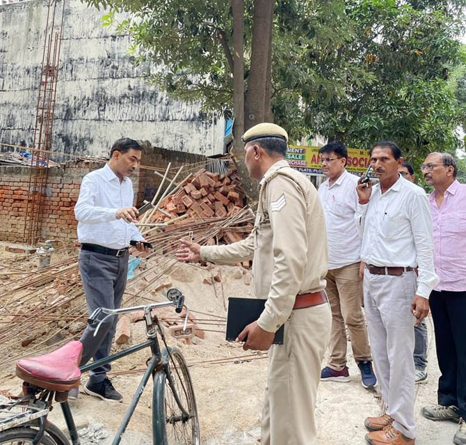 गाजियाबाद। बिना नक्शा स्वीकृत के क्षेत्र में अवैध निर्माण नही होने दिया जाएगा। अगर क्षेत्र में कोई भी अवैध निर्माण पाया गया तो बिल्डर के साथ अब संबधित अधिकारी के खिलाफ भी कार्रवाई की जाएगी। शुक्रवार को जीडीए सचिव बृजेश कुमार ने इंदिरापुरम क्षेत्र में बिल्डरों की साइट के अलावा अन्य क्षेत्र में इंजीनियरों के साथ निरीक्षण किया। जीडीए प्रवर्तन अनुभाग के नोडल अधिकारी एवं प्रवर्तन जोन-6 के प्रभारी एवं सचिव बृजेश कुमार ने जोन के सहायक अभियंता योगेश पटेल, अवर अभियंता गिरिजा शंकर मल, सतेंद्र सिंह, आरके गुप्ता आदि के साथ इंदिरापुरम क्षेत्र में निर्माणधीन साइटों का निरीक्षण किया। बिल्डरों द्वारा बनाई जा रही गु्रप हाउसिंग सोसायटी का भी निरीक्षण किया।