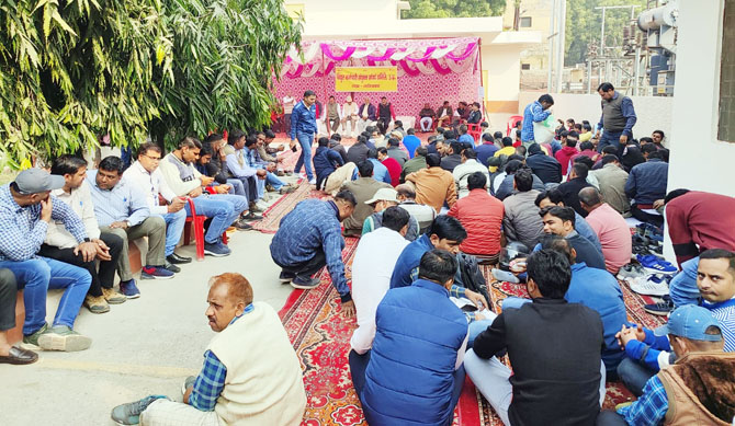 लाभ कमाया जा रहा है। अगर मांगे पूरी नही की गई तो सड़कों पर उतरकर आंदोलन करने के लिए बाध्य होना पड़ेगा। सहसंयोजक अरशद अली ने बताया कि बेहतर उपभोक्ता सेवा के नाम पर मनमानें तरीके से दिन-रात वीसी करके अधिकारियों एवं कर्मचारियों को प्रताडि़त किया जा रहा है जिसके कारण विभाग के डिस्कोमो की रेटिंग में अप्रत्याशित गिरावट हो रही है। उन्होंने कहा उत्तर प्रदेश ऊर्जा निगमों में शीर्ष प्रबनधन की स्वेच्छाचारिता एवं हिटलर शाही नीति पर तत्काल विराम लगाकर कार्य का वातावरण बेहतर बनाया जाये। तेलंगाना, पंजाब, राजस्थान की भाति विभाग के संविदाकर्मियों को नियमित किया जाये। विद्युत बोर्ड के विघटन के समय कार्मिको की सेवा शर्तो एवं कार्मिकों को पूर्व मिल रहे निम्नतम तीन प्रोन्नती पदों का समयबद्ध वेतन मान बहाल किया जाये व एलएमबी 10 की सुविधा इत्यादि को यथावत जारी किया जाये।