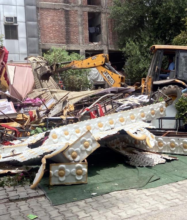 गाजियाबाद। नगर निगम के वसुंधरा जोन में बुधवार को अतिक्रमण हटाओ अभियान चलाया गया। इस दौरान ग्रीन बेल्ट से होटलों तथा बैंकों का अतिक्रमण हटाया गया। अतिक्रमण कर्ताओं से 3 लाख रुपए जुर्माना भी वसूला गया। पुन: वहां अतिक्रमण न करने की चेतावनी दी गई। दोबारा ऐसा होने पर कानूनी कार्रवाई की जाएगी। शहर को अतिक्रमण मुक्त रखने के लिए नगर निगम निरंतर कार्रवाई कर रहा है। इसी क्रम में बुधवार को वसुंधरा जोन में संपत्ति अधीक्षक भोलानाथ और जोनल प्रभारी सरिता सिंह के नेतृत्व में अभियान चलाया गया।