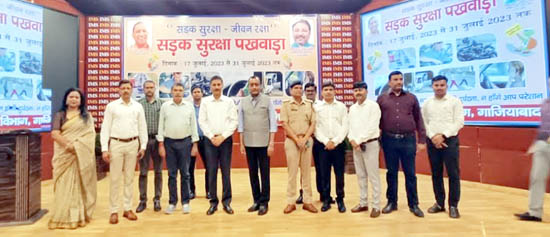 गाजियाबाद। सड़क सुरक्षा के प्रति जागरूकता लाने के लिए वित्तीय वर्ष 2023-24 में सड़क सुरक्षा सप्ताह के स्थान पर 17 जुलाई सोमवार से 31 जुलाई तक सड़क सुरक्षा पखवाड़ा का आयोजन किया गया। सोमवार को जिलाधिकारी राकेश कुमार सिंह ने सड़क सुरक्षा पखवाड़ा का उद्घाटन आईएमएस, लालकुआं कैम्पस में प्रचार वाहन को हरी झंडी दिखाकर रवाना किया। साथ सड़क सुरक्षा नियमों का पालन करने की अपील की। जिलाधिकारी राकेश कुमार सिंह ने कहा सड़क पर पैदल या वाहन के माध्यम से चलते हुए यातायात के नियमों का पालन करें। सुरक्षित चलना ही बचाव का एकमात्र रास्ता है। दोपहिया मोटर वाहनों को चलाते समय या सवारी करते समय हेलमेट जरूर लगाये। कार इत्यादि वाहनों पर यात्रा करने पर सीट बैलट जरूर लगाये। रांग साइड पर बिल्कुल भी वाहन ना चलाये।