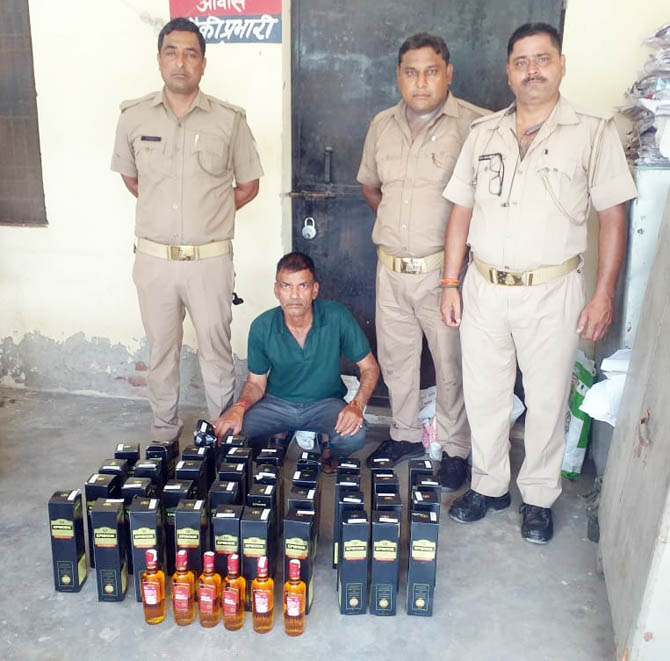जिला आबकारी अधिकारी राकेश कुमार सिंह ने बताया कि जनपद में अवैध शराब को लेकर आबकारी निरीक्षक लगातार चेकिंग एवं तस्करों के संबधित ठिकानों पर दबिश दे रहे है। साथ ही बोर्डर पर भी टीम वाहनों की चेकिंग कर रही है। शनिवार सुबह सूचना प्राप्त हुई कि एक व्यक्ति विजय नगर क्षेत्र में दिल्ली की शराब बेच रहा है। सूचना पर कार्रवाई करते हुए आबकारी निरीक्षक आशीष पाण्डेय की टीम को लगाया गया। आबकारी निरीक्षक ने दबिश से पूर्व सिपाही को सिविल वर्दी में ग्राहक बनाकर युवक के पास शराब लेने के लिए भेजा। जहां आरोपी ने उससे रुपए लेकर दो हॉफ रॉयल स्टेज की दी। सूचना पुख्ता होने पर टीम ने अशोक कुमार पुत्र स्व. रीक्षपाल निवासी गली नंबर-14, मकान नंबर 24 कृष्णानगर बागू बाईपास पर दबिश दी। दबिश के दौरान आरोपी के घर में रखे दो बेडों की जब तलाशी ली गई तो 24 बोतल ऐपीसोड सुपीरियर ग्रेन व्हिस्की, 2 बोतल रॉयल रॉयल ग्रीन व्हिस्की, दूसरे बेड से 15 बोतल ऐपीसोड सुपीरियर ग्रेन व्हिस्की, घर मे रखी अलमारी से 6 हॉफ आइनेट रिजर्व व्हिस्की बरामद किया गया।