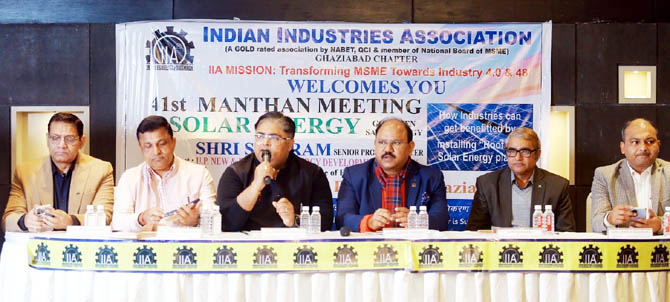 गाजियाबाद। उत्तर प्रदेश के उद्योगों में ग्रीन एनर्जी के उपयोग बढ़ावा देने के लिए इंडियन इंडस्ट्रीज एसोसिएशन (आईआईए) के राष्ट्रीय अध्यक्ष नीरज सिंघल ने कवायद तेज कर दी है। मंगलवार को संजय नगर स्थित फार्च्यून इन होटल में मूविंग टुवर्ड्स ग्रीन एंड क्लीन सोलर इंडस्ट्रियल एरिया के विषय पर 41वीं मंथन बैठक का आयोजन किया गया। जिसमें मुख्य अतिथि के रूप में श्रीराम, वरिष्ठ परियोजना अधिकारी, यूपीनेडा, अतिरिक्त स्रोत ऊर्जा विभाग, उप्र उपस्थित रहे। बैठक का संचालन आईआईए गाजियाबाद चैप्टर सचिव संजय अग्रवाल ने किया। चेयरमैन राकेश अनेजा ने कहा कि गाजियाबाद के औद्योगिक क्षेत्रों को ग्रीन एवं क्लीन सोलर एनर्जी इंडस्ट्रियल एरिया के रूप में विकसित करने की दिशा में आईआईए द्वारा यह सार्थक प्रयास चल रहा है, सोलर रूफ टॉप पॉलिसी में आवश्यक बदलाव की जरूरत है, जिसके संबंध में आईआईए द्वारा उच्च स्तर पर कार्यवाही प्रचलित है।
