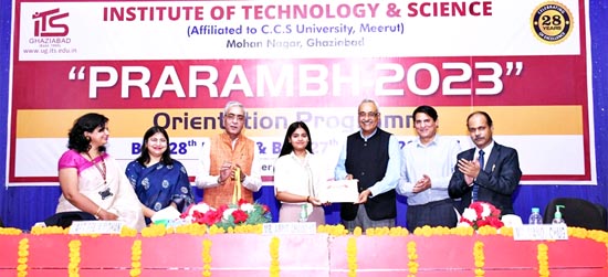 गाजियाबाद। मोहन नगर स्थित आईटीएस मोहन के स्नातक परिसर मे बीसीए पाठ्यक्रम के 27वें बैच (सत्र 2023-26) के नवप्रवेशी छात्रों के लिए मंगलवार को भव्य समारोह के साथ नव सत्र का शुभारंभ हुआ। इस अवसर पर वाईस चैयरमेन अर्पित चड्ढा ने अपने सन्देश मेंं नवप्रवेशी छात्र छात्राओं से उनके भविष्य के सपनों के बारे में संवाद करते हुए कहा कि अपने सपनो को पूरा करने के लिए लक्ष्य निर्धारित करने और उसे निरंतर प्रयास करने कि आवश्यकता है। उन्होंने छात्रों को अपने लक्ष्य प्राप्ति के लिए स्वयं पर विश्वास के साथ केंद्रित प्रयास पर बल देते हुए कहा कि हमें अन्य अनावश्यक बातों से भर्मित हुए बिना सदा आगे बढऩे की अवश्यकता है। जिससे कि सफलता पूर्वक अपने लक्ष्य को प्राप्त किया जा सकें।