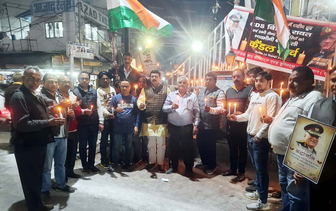 अध्यक्ष राजदेव त्यागी ने कहा उनके कार्यो को देश का इतिहास हमेशा याद रखेगा। कम समय में ही उन्होंने भारत की सैन्य तैयारियों को दुश्मनों से मुकाबले के लिए नई बुलंदियों पर पहुंचाया। अपनी सेवा के दौरान जनरल रावत को परम विशिष्ट सेवा पदक, उत्तम युद्ध सेवा पदक, अति विशिष्ट सेवा पदक, विशिष्ट सेवा पदक, युद्ध सेवा पदक और सेना पदक से अलंकृत किया गया। जनरल बिपिन रावत का हेलिकॉप्टर तमिलनाडु के नीलगिरी जिले में क्रैश हो गया था। इस दर्दनाक हादसे में बिपिन रावत के अलावा पत्नी मधुलिका रावत और 11 अन्य लोगों की भी मौत हो गई। उन्होंने कहा जनरल बिपिन रावत को पूरा देश नम आखों से याद कर रहा है। उपचाराधीन ग्रुप कैप्टन वरुण सिंह के लिए शीघ्र स्वास्थ्य लाभ के लिए प्रार्थना की गई। इस दौरान महामंत्री राकेश पचौरी, संजीव देवकमल, अनिल गुप्ता, रोहित कुमार, रविंद्र शर्मा, शैलेश सैनी आदि समस्त दवा व्यापारी उपस्थित थे।
