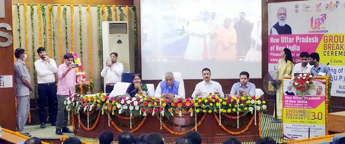 गाजियाबाद। प्रदेश में औद्योगिक इकाइयों के निवेश किए जाने को लेकर लखनऊ में प्रधानमंत्री नरेंद्र मोदी एवं मुख्यमंत्री योगी आदित्यनाथ द्वारा केंद्र एवं प्रदेश सरकार के कैबिनेट मंत्रियों की उपस्थिति में किए गए तीसरी ग्राउंड ब्रेकिंग सेरेमनी का लाइव प्रसारण किया गया। मोहननगर स्थित आईटीएस कॉलेज में आयोजित तीसरी ग्राउंड ब्र्रेकिंग सेरेमनी का केंद्रीय सड़क परिवहन एवं राजमार्ग राज्यमंत्री जनरल वीके सिंह एवं जिलाधिकारी राकेश कुमार सिंह ने संयुक्त रूप से दीप प्रज्जवलित कर शुभारंभ किया। जिले में 205 इकाईयों द्वारा 3350 करोड़ रुपए का निवेश किया जाएगा। जबकि प्रदेश में तीसरी ग्राउंड ब्रेकिंग सेरेमनी में 1406 इकाईयों द्वारा 80224 करोड़ रुपए का निवेश होगा। ईज ऑफ डूइंग बिजनेस में उत्तर प्रदेश जहां दूसरे स्थान पर है। वहीं,लीड्स रैंकिंग 2021 में 7 स्थानों की उल्लेखनीय बढ़ोत्तरी हुई हैं।मोहननगर स्थित आईटीएस कॉलेज में शुक्रवार को जिलाधिकारी राकेश कुमार सिंह के निर्देशन में ग्राउंड ब्रेकिंग सेरेमनी-03 का आयोजन किया गया।