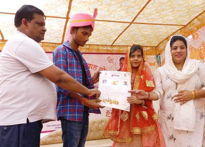 नगर आयुक्त महेंद्र सिंह तंवर ने बताया कि जिलाधिकारी के निर्देशानुसार सामूहिक विवाह समारोह में अधिक से अधिक पात्र का रजिस्ट्रेशन कराकर विवाह समारोह संपन्न कराने के लिए जोनल प्रभारियों को निर्देशित किया गया था। जिसको जोनल प्रभारी ने बखूबी अंजाम दिया। नगर आयुक्त ने अपील करते हुए कहा कि मुख्यमंत्री सामूहिक विवाह योजना का लाभ लेने के लिए पात्रों को निर्देशानुसार सभी आवश्यक दस्तावेजों के साथ नगर निगम जोनल कार्यालय पर आवेदन करना होगा। सामूहिक विवाह हेतु विधवा की पुत्री, स्वयं विधवा व तलाकशुदा का पुनर्विवाह, दिव्यांगजन अभिभावक की पुत्री, जो स्वयं दिव्यांग हो, को प्राथमिकता दी जाएगी। योजनान्तर्गत कुल 51 हजार की राशि प्रति जोड़े पर व्यय की जाती है। इसमें 35 हजार लड़की के बैंक बचत खाते में स्थानान्तरित की जाती है। विवाह सामग्री के लिए 10 हजार दिए जाते हैं। प्रति जोड़ा भोजन, बिजली-पानी, टेंट की व्यवस्था में 6 हजार व्यय किया जाता है। मुख्यमंत्री सामूहिक विवाह योजना को आगे बढ़ाने के लिए नगर निगम के अधिकारी अपने कार्यों का ईमानदारी के साथ निर्वहन कर रहे है।
