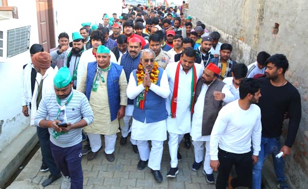 गाजियाबाद। मुरादनगर विधानसभा सीट से राष्ट्रीय लोकदल एवं समाजवादी पार्टी गठबंधन के संयुक्त प्रत्याशी सुरेंद्र कुमार मुन्नी के पक्ष में चुनावी माहौल बनाने के लिए 8 फरवरी मंगलवार को रालोद सुप्रीमो चौधरी जयंत सिंह गोविंद पुरम में जनसभा को संबोधित करेंगे। रविवार को संयुक्त प्रत्याशी सुरेंद्र कुमार मुन्नी के पक्ष में गांव बम्हैटा में एक बड़ी सभा का आयोजन किया गया। बम्हैटा गांव में आयोजित सभा मेें भारी संख्या में ग्रामीणों ने हिस्सा लिया और एक सुर में कहा कि अबकी बार बम्हैटा गांव का समस्त मतदाता सुरेंद्र कुमार मुन्नी के पक्ष में वोट देने का काम करेगा और सुरेंद्र कुमार मुन्नी को विजयी बनाएंगे। ग्रामीणों ने इस मौके पर हाथ उठाकर सुरेंद्र कुमार मुन्नी का अभिनंदन किया।