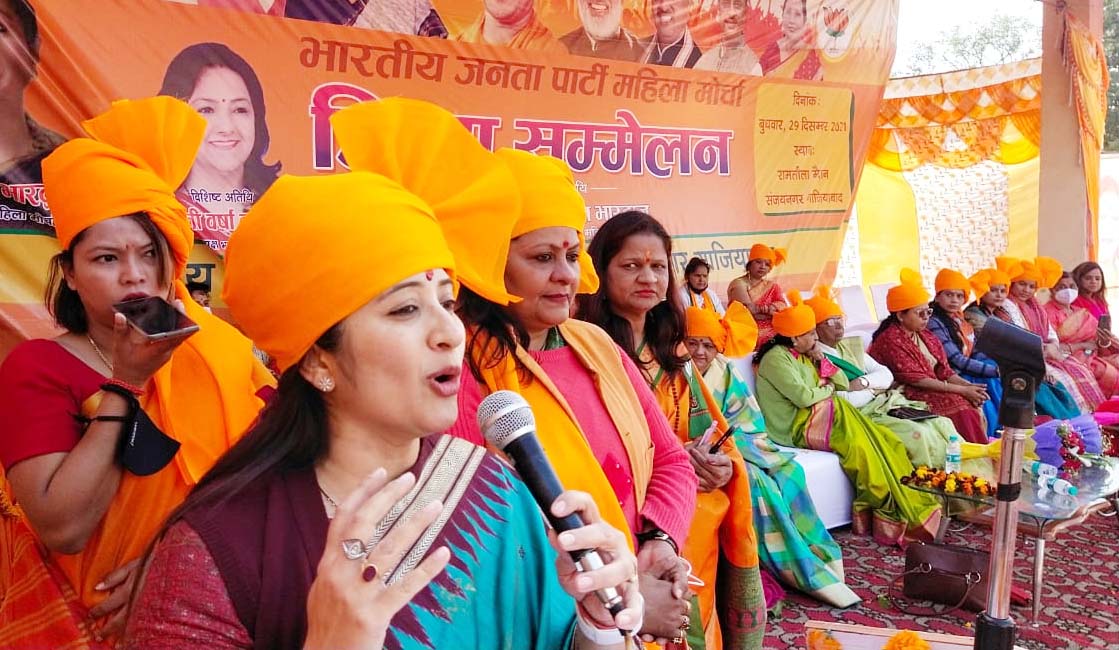 गाजियाबाद। भारतीय जनता पार्टी महिला मोर्चा की महानगर इकाई ने महानगर अध्यक्ष पूनम कौशिक और जिला अध्यक्ष अनिता मिश्रा के नेतृत्व में बुधवार को महासम्मेलन का आयोजन किया। सम्मेलन में मुख्य अतिथि राष्ट्रीय महामंत्री महिला मोर्चा दीप्ति रावत ने कहा कि भाजपा की नीतियों एवं योजनाओं का जनता को लाभ मिल रहा है। प्रधानमंत्री नरेंद्र मोदी सरकार ने महिलाओं के कल्याण के लिए बेहतर काम किए है। उन्होंने कहा पिछली सरकारों में हुए उनकी उपेक्षा को भी भलीभांति जाना है।