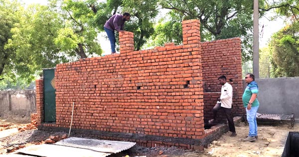 नगर निगम सख्त, पीली ईंट का इस्तेमाल होने पर ढहा दी दीवाल, ठेकेदार को फिर से करना होगा निर्माण कार्य