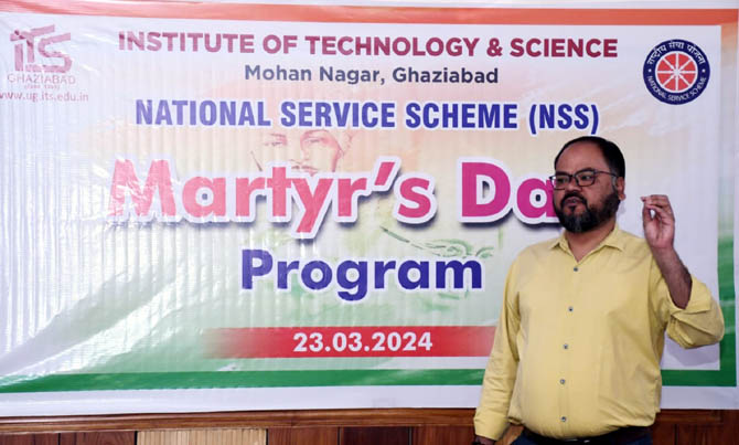 गाजियाबाद। मोहन नगर स्थित आईटीएस (स्नातक परिसर) में दिनांक 16 मार्च से प्रारम्भ सात दिवसीय शिविर के सातवें दिन 23 मार्च को संस्था और एनएसएस इकाई के स्वयंसेवकों ने शहीद दिवस के साथ समापन हुआ। जिसमें महाविद्यालय के छात्र-छात्राओं ने बड़ी संख्या में अपनी भागीदारी की। जिसकी विषयवस्तु क्रांतिकारियों को श्रद्धांजलि था। शहीद दिवस के इस अवसर पर संस्था तथा राष्ट्रीय सेवा योजना के स्वयंसेवकों ने सरदार भगत सिंह, राजगुरु और सुखदेव तथा देश के महान युवा क्रांतिकारियों के सर्वोच्च बलिदान को याद किया गया। कार्यक्रम में सरदार भगत सिंह, राजगुरु, और सुखदेव के जीवन पर गोष्ठियों का आयोजन किया गया।