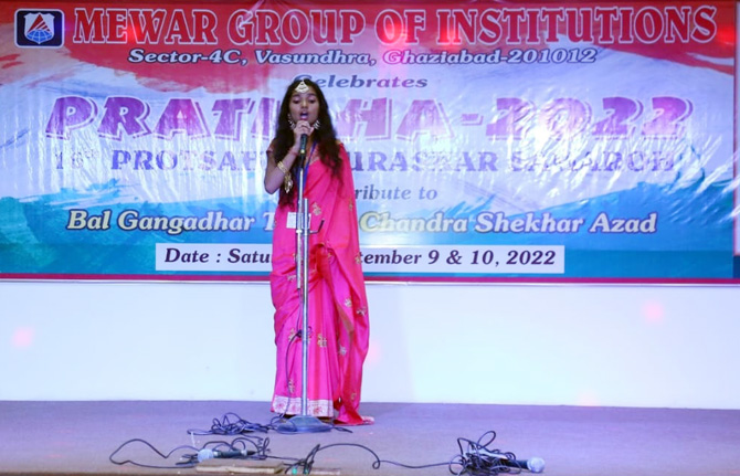 पहले दिन निबंध, वाद-विवाद, मेहंदी, रंगोली, एकल गान, समूह गान व स्लोगन राइटिंग प्रतियोगिताओं का आयोजन किया गया। सुबह से ही स्कूली बच्चों का मेवाड़ ग्रुप ऑफ इंस्टीट्यूशंस में मेला लगना शुरू हो गया था। इंस्टीट्यूशंस की निदेशिका डॉ. अलका अग्रवाल ने प्रतियोगिता स्थल पर पहुंचकर बच्चों के हुनर की तारीफ की। वाद-विवाद प्रतियोगिता का विषय केन्द्र सरकार की अग्निपथ योजना, सही या गलत था। बच्चों ने इसके पक्ष और विपक्ष में अपने तर्क देकर अपनी बात को साबित करने का प्रयास किया। इसमें वनस्थली पब्लिक स्कूल की अल्शिता चौहान पहले, महाराजा अग्रसेन पब्लिक स्कूल की इशिका दूसरे एवं संस्कार वर्ल्ड स्कूल की तनिशा शर्मा तीसरे नंबर पर रहीं।