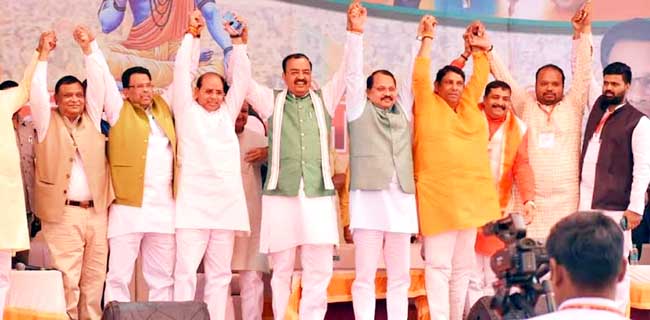 राहुल गांधी प्रधानमंत्री मोदी का अपमान करके देश के पूरे ओबीसी समाज का अपमान करते हैं। इसलिए आने वाले आम चुनाव में देश का ओबीसी वर्ग कांग्रेस के इतिहास के अंतिम पन्न को भी बंद कर देगा। उन्होंने योगी सरकार का जिक्र करते हुए कहा कि प्रदेश सरकार ने भ्रष्टाचारियों व माफियाओं की कमर तोडऩे का काम किया है। प्रदेश में कानून का राज स्थापित हुआ है, जबकि सपा व बसपा की सरकारों में सिर्फ गुंडागर्दी ही होती थी, लेकिन आज प्रदेश में कानून का राज है। कार्यक्रम की अध्यक्षता ओबीसी मोर्चा भाजपा के राष्ट्रीय अध्यक्ष व राज्यसभा सदस्य के लक्ष्मण ने की।