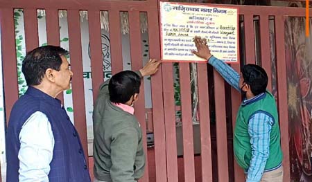 गाजियाबाद। नगर निगम ने बड़े बकाएदारों से बकाया राशि की वसूली के लिए अभियान तेज कर दिया है। इसी क्रम में बुधवार को वसुंधरा जोन में निजी प्रतिष्ठान को बकाया जमा न करने पर सीलिंग कार्रवाई के लिए नोटिस जारी किया गया। नोटिस की प्रति प्रतिष्ठान के बाहर चस्पा कर दी गई। 2बी/सीएस/एएफएफ पर 779933 रुपए संपत्ति कर बकाया है। संबंधित प्रतिष्ठान को सीलिंग का नोटिस दिया गया है।