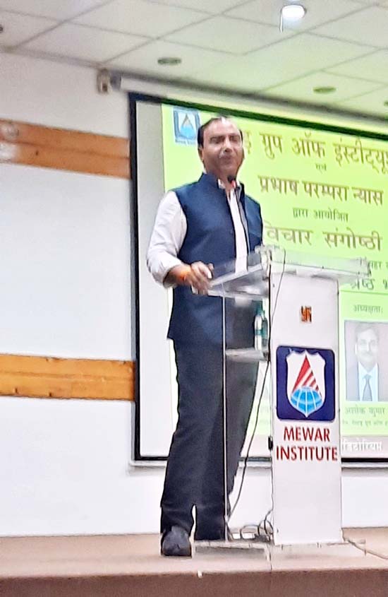 असमानता पैदा करने वाले संविधान में बदलाव लाया जाएगा। मोदी सरकार सभी को एक समान अधिकार देने वाले विधान को लागू करने वाली है। इसमें अपना कानून, अपना समाज, निष्पक्ष भारत, प्रजातांत्रिक भारत होगा। सभी को एक समान अधिकार मिलेंगे। सभी को सोचने और बोलने की आजादी मिलेगी। अब फूट डालो राज करो वाली नीतियां इस देश में नहीं चलेंगी। उन्होंने दावा किया कि एक देश-एक विधान वाला सूत्र भगवान श्रीराम ने शुरू किया था, जिसे आज के भारत में लागू करना अनिवार्य है। इससे निश्चित ही समाज का भला होगा। मेवाड़ ग्रुप ऑफ इंस्टीरट्यूशंस की निदेशिका डॉ. अलका अग्रवाल ने देश में एक विधान वाले कानून को लागू करने पर अपनी सहमति जताते हुए सभी आगंतुकों, शिक्षकगणों और विद्यार्थियों का आभार व्यक्त किया। संचालन भार पत्रकार मनोज मिश्र ने संभाला।