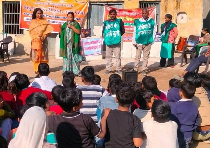 गाजियाबाद। राज्य परियोजना कार्यालय द्वारा नामित श्रीमंत संस्कार संस्था की नुक्कड़ नाटक टीम का भोजपुर ब्लॉक में तृतीय दिवस में ग्राम गढ़ी गदाना एवं ग्राम भोजपुर में नुक्कड़ नाटक का आयोजन किया गया। जहां पर नुक्कड़ नाटक के माध्यम से जनसाधारण को शिक्षा के प्रति, छात्रों को प्रतिदिन विद्यालय भेजने के प्रति, बालिका शिक्षा के प्रति लिंग भेदभाव के प्रति जागरूक किया गया। सरकार द्वारा चलाई गई शिक्षण ऐप की जानकारी भी दी गयी। विधायिका डॉ मंजू शिवाच ने हाल ही में हुई घटना में एक छोटी सी बालिका की बहादुरी के बारे में बता कर बालिकाओं को प्रेरित किया कि वह निडर बने। एलएलएम में टॉप करने वाली लड़की के उदाहरण से पढ़ाई करके आगे बढऩे हेतु प्रेरित किया। बीडीओ भोजपुर सुधीर ने गांव वालों को शिक्षा के प्रति जागरूक किया।