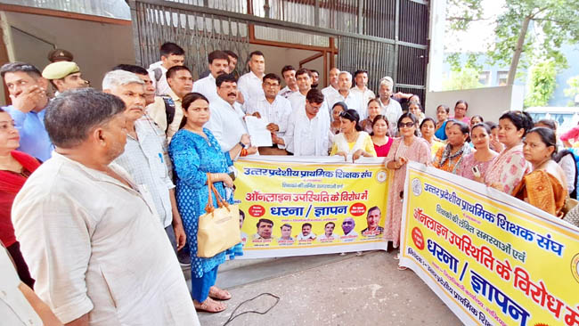 उसी प्रकार परिषदीय शिक्षकों की भी उपस्थिति दर्ज कराई जाए अन्यथा संगठन आंदोलन को तीव्र करने पर विवश होगा। इस अवसर पर जिलाध्यक्ष रविंद्र राणा, प्रांतीय उपाध्यक्ष डॉ अनुज त्यागी, वरिष्ठ उपाध्यक्ष आदेश मित्तल, लोनी ब्लाक अध्यक्ष मनोज डागर, मुरादनगर ब्लॉक अध्यक्ष अमित यादव, भोजपुर ब्लॉक अध्यक्ष पुष्पेंद्र सिंह, रजापुर ब्लाक अध्यक्ष मनोज कुमार, धर्मेश जौहर,अमित कुमार, सुनिता खटाना, नीतू नेहरा, अलका सिंह, अर्चना सिरोही, अमित चौधरी, अनुप्रीत, अरविंद, करून कुमार, प्रीती, अनुपमा, मनिला, महेश कुमार, निशा रानी गुलफाम अली, रविन्द्र पाल, गीता शाक्य, नरेश, कनिष्ठा, दिव्या, प्रदीप, विपिन अंजू, बलराज जय प्रकाश, ओमेंद्र, अब्दुल गफ्फार, महेश, प्रवीण, अजय, नूतन, अय्याज अली प्रोमोद, अनुपमा, बबली, सुचेता अर्चना, स्वेता, आशा, रेनू, बबीता देशवाल, ज्ञानेंद्र, राजपाल यादव, शोकीन, अनिता, अरूणा, लक्ष्मी, सुमन, अलका, गुल्लू, आशु, संध्या आदि उपस्थित रहे।