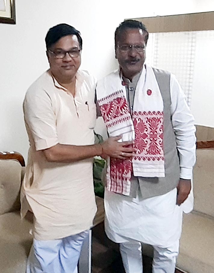 नई दिल्ली। अखिल भारतवर्षीय ब्राह्मण महासभा के राट्रीय महामंत्री तरूण मिश्र ने बुधवार को असम सरकार के शहरी विकास एवं सिंचाई मंत्री अशोक सिंघल से मुलाकात की। असम की राजधानी गुवाहाटी में तरूण मिश्र ने शहरी विकास एवं सिंचाई मंत्री अशोक सिंघल से भेंट की। इस दौरान ब्राह्मण समाज के उत्थान, ब्राह्मण कल्याण बोर्ड के गठन और असम-मिजोरम सीमा विवाद आदि बिंदुओं पर चर्चा की गई।