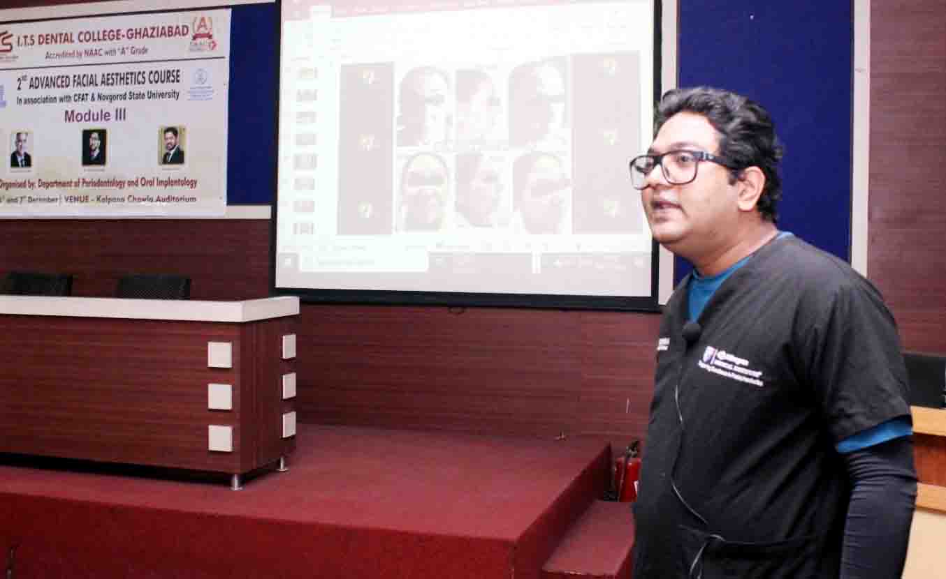 गाजियाबाद। दिल्ली मेरठ रोड़ स्थित आईटीएस डेंटल कॉलेज मुरादनगर के पीरियडोनटोलॉजी विभाग द्वारा 6 एवं 7 दिसंबर गुरुवार को दूसरे एडवांस फेशियल एस्थेटिक्स कोर्स के तीसरे मॉड्यूल का आयोजन किया गया। इस कार्यक्रम में 35 प्रतिभागियों ने भाग लिया, जिनमें निजी दंत चिकित्सक, कॉलेज के पूर्व छात्र, संस्थान के दंत चिकित्सक, एमडीएस के विद्यार्थी और कॉलेज के अध्यापक शामिल थे। यह कोर्स सेंटर फॉर फेशियल एस्थेटिक्स ट्रेनिंग (सीएफएटी) और नोवगोरोड विश्वविद्यालय, रूस के सहयोग से आयोजित किया गया था। यह कार्यक्रम आईटीएस-द एजुकेशन ग्रुप के वाईस चेयरमैन, अर्पित चड्ढा के सहयोग से आयोजित किया गया। जिसका उद्देश्य मरीजों के बीच चेहरे के सौन्दर्य चिकित्सा के बारे में जागरूकता बढ़ाना और चेहरे के सौन्दर्य में वृद्धि की मांग करने वाले रोगियों की प्राथमिक वैकल्पिक लक्ष्यों को प्राप्त करना एवं रोगी को समग्र उपचार प्रदान करना है।