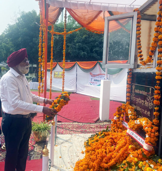 गाजियाबाद। शास्त्री नगर के कैप्टन गुरजिन्दर सिंह पार्क में बुधवार को शहीद कैप्टन गुरजिन्दर सिंह सूरी (महावीर चक्र विजेता) का शहादत दिवस बड़े ही श्रद्धा और उत्साह के साथ मनाया गया। सभी वक्ताओं ने कहा कि देश को अपने वीर सैनिकों पर गर्व है। इस मौके पर ले0 जनरल जीएस चंदेल, बि सुभाष, कर्नल समीर चौधरी, कर्नल खुशवीर नंदा, कर्नल आरके झा, मेजर आकाश दूबे, कर्नल सुखबीर सिंह, मेयर आशा शर्मा, मिरणालिनी सिंह, कर्नल टीपी त्यागी, कर्नल टीपी सिंह सूरी, सरदार एसपी सिंह, मंजीत सिंह, भूपेन्द्र सिंह जस्स, हरप्रीत सिंह जग्गी, रविन्दर सिंह जौली, राकेश बाठला, इन्द्रजीत सिंह टीटू, बीके हनुमान आदि ने शहीद कैप्टन गुरजिन्दर सिंह सूरी को याद करते हुए विनम्र श्रद्धांजलि अर्पित किया।