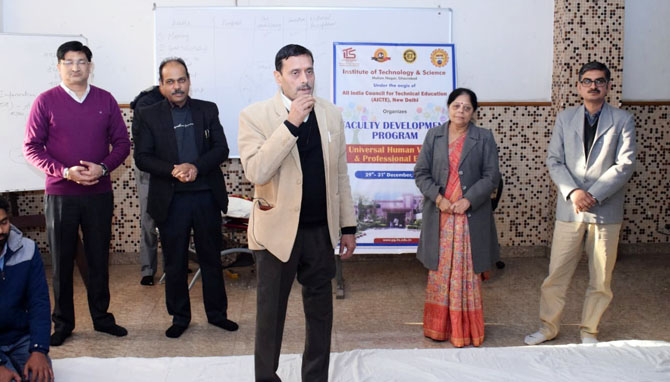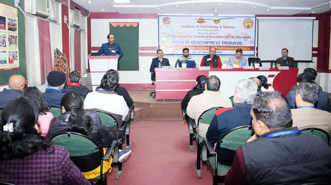 गाजियाबाद। मोहन नगर स्थित आईटीएस में वैश्विक मानवीय मुल्य विषय पर तीन दिवसीय फैकल्टी डेवलपमेंट प्रोग्राम का आयोजन ऑल इंडिया काउंसिल ऑफ टेक्निकल एजुकेशन (एआईसीटीई) के सहयोग एवं दिशा निर्देश के अनुरूप आयोजित किया गया। कार्यक्रम का उद्घाटन मुख्य वक्ता अजय कुमार पाल को फेसिलिटेटर डॉ एचके रॉय, एआईसीटीई के मनोनीत पर्यवेक्षक डॉ मुंशी यादव, संस्थान के निर्देशक डॉ वीएन बाजपेई, डॉ सुनील कुमार पांडे, निदेशक (आईटी एवं यूजी) तथा प्रोग्राम कॉर्डिनेटर डॉ मनोज कुमार झा द्वारा पारंपरिक दीप प्रज्ज्वलित कर किया गया।