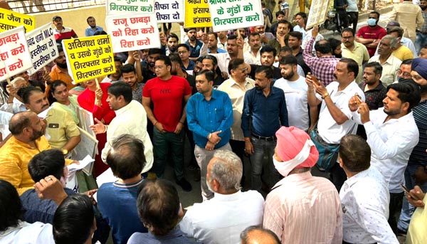 गाजियाबाद। एमएलसी श्रीचंद शर्मा के बेटे और उत्तर प्रदेश उद्योग व्यापार मंडल की युवा इकाई के प्रदेश उपाध्यक्ष राजू छाबड़ा के बीच हुए विवाद की निष्पक्ष जांच की मांग को लेकर सोमवार को उप्र व्यापार मंडल से जुड़े सैकड़ो व्यापारी हाथों में तख्ती लिए श्रीचंद शर्मा एमएलसी के गुंडो को गिरफ्तार करो, राजू छाबड़ा को रिहा करो, अविनाश शर्मा व उसके गुंडो को गिरफ्तार करो आदि नारे लगाते हुए जिला मुख्यालय पहुंचे और कार्रवाई की मांग को लेकर प्रशासनिक अधिकारी को ज्ञापन सौंपा।