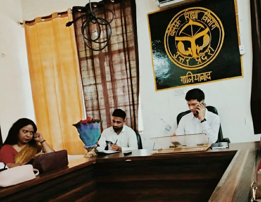 गाजियाबाद। जनपद में चार्ज संभालने के बाद नननियुक्त जिला बेसिक शिक्षा अधिकारी विनोद मिश्रा एक्शन मोड में आ गए हैं। सरकारी विद्यालयों में शिक्षा व्यवस्था को सुधारने के लिए उन्होंने प्रयास शुरू कर दिए हैं। इसी क्रम में निपुण भारत योजना पर भी तेजी से काम किया जाएगा। उन्होंने मातहतों को कार्यशैली में सुधार लाने और शिक्षा व्यवस्था में किसी प्रकार की कोताही न बरतने के साफ निर्देश दिए हैं। नवनियुक्त जिला बेसिक शिक्षा अधिकारी विनोद मिश्रा ने मंगलवार को कार्यालय सभागार में सभी एसआरजी, एआरपी (एकेडमिक टीम) की बैठक बुलाई। बैठक में सर्वप्रथम परिचय का आदान-प्रदान किया गया। जहां खण्ड शिक्षा अधिकारी लोनी, प्रवीन कुमार एवं एआरपी मनीष कुमार शर्मा, रेणु चौधरी, लता शर्मा, स्तुति बाजपेई, रवि अरोड़ा ने फूलों का गुलदस्तां भेंटकर बीएसए का स्वागत किया। तदुपरांत बीएसए विनोद मिश्रा ने एकेडमिक टीम से अपेक्षाएं एवं राज्य स्तर पर जनपद की स्थिति को बेहतर बनाने के संबंध में आवश्यक टिप्स दिए।