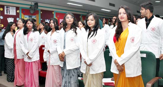 गाजियाबाद। दिल्ली-मेरठ रोड़ स्थित आईटीएस डेंटल कॉलेज मुरादनगर में गत वर्षो की भांति बीडीएस पाठ्यक्रम के तृतीय वर्ष के छात्र-छात्राओं के लिए व्हाइट कोट एवं एकेडमिक अवार्डस सेरेमनी का आयोजन किया गया। इस समारोह में बीडीएस तृतीय वर्ष के विद्यार्थियों को आधिकारिक तौर पर क्लीनिक की जिम्मेवारी सौपी गयी तथा सभी विद्यार्थियों को क्लीनिक में प्रवेश करने से पहले शपथ द्वारा चिकित्सा नैतिकता का पालन करने तथा रोगियों के लिये लाभकारी होने की प्रतिज्ञा दिलाई गई।