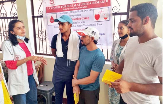 इसके साथ ही आईटीएस डेंटल कॉलेज के बीडीएस, एमडीएस के विद्यार्थियों, और संस्थान की फैकल्टी एंव स्टाफ ने इस कार्यक्रम में बढ़-चढ़ रक्तदान किया। इसके साथ ही आईटीएस हेल्थ एंड एलाइड साइंसेज एवं आईटीएस कॉलेज ऑफ फार्मेसी के छात्रों एवं फैकल्टी तथा स्टाफ ने भी इस कार्यक्रम में उत्साहपूर्वक भाग लिया। सबसे पहले दानदाताओं को एक पंजीकरण फॉर्म भरने के लिए कहा गया, फिर उनका ब्लड प्रेशर, हीमोग्लोबिन काउंट और वजन माप की गहन चिकित्सा जांच की गई। आयोजन स्थल से जाने से पहले कुछ समय के लिए दानदाताओं के लेटने और स्वस्थ होने की भी व्यवस्था की गई थी। रक्त देने के पश्चात दानदाताओं को पहचान पत्र व स्मृति चिन्ह प्रदान किया गया तथा उन्हें एक डोनर कार्ड भी मिला, जिसमें अगले एक साल के दौरान ब्लड बैंक से एक यूनिट रक्त मुफ्त उपलब्ध किया जाएगा।