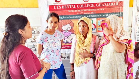 गाजियाबाद। दिल्ली मेरठ रोड़ स्थित आईटीएस डेंटल कॉलेज मुरादनगर के पब्लिक हैल्थ डेन्टिस्ट्री विभाग द्वारा 1 अगस्त से 7 अगस्त तक विश्व स्तनपान सप्ताह मनाया गया। जिसका विषय ”स्तनपान को बढ़ावा देना: कामकाजी माता-पिता के लिए बदलाव लाना” था। विश्व स्तनपान को प्रोत्साहित करने और दुनिया भर के शिशुओं के स्वास्थ्य में सुधार के लिये हर साल विश्व स्तनपान सप्ताह मानया जाता है। इसकी शुरूआत अगस्त 1990 में हुई थी। विश्व स्तनपान सप्ताह घोषित किए जाने का उद्देश्य स्तनपान को बढ़ावा देना था, जिससे शिशुओं को सही पोषण और उनका स्वास्थ्य बेहतर किया जा सके। इस मिशन में विश्व स्वास्थ्य संगठन, यूनिसेफ और अन्य संगठन भी शामिल है।