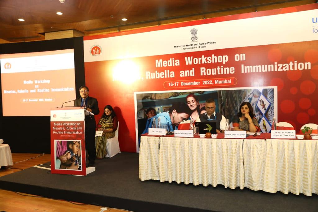 मुंबई: चाहे कोई भी अभियान हो विशेष रूप से स्वास्थ्य संबंधी अभियान मीडिया की भूमिका हमेशा ही अहम रही है। चाहे पल्स पोलियो अभियान हो, या नियमित टीकाकरण अभियान या फिर कोरोना के दौरान लोगों को सजग करने में मीडिया की भूमिका, हमेशा ही मीडिया ने अपने दायित्व बोध का निर्वहण किया है। कोरोना के दौरान नियमित टीकाकरण अभियान में आई शिथिलता के कारण नियमित टीकाकरण अभियान के दौरान बच्चों का टीकाकरण थोड़ा बाधित हुआ। इसके परिणाम स्वरूप खसरा और रूबेला के मामले देश के अलग—अलग हिस्सों में बढ़े हैं। इसी आसन्न चुनौती पर विचार करने नियमित टीकाकरण और खसरा और रूबेला टीकाकरण पर जागरूकता पैदा करने में मीडिया की महत्वपूर्ण भूमिका पर चर्चा करने के लिए पूरे भारत के 60 से अधिक मीडिया पेशेवरों ने दो दिवसीय कार्यशाला में भाग लिया।