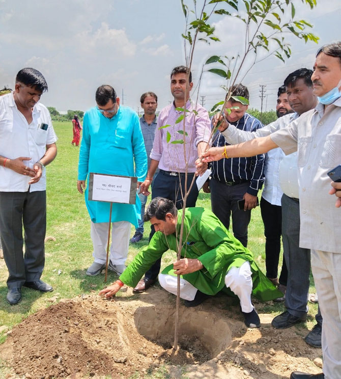 -एमएलसी श्रीचंद शर्मा ने खानपुर गांव के पार्क में लगाए पौधे