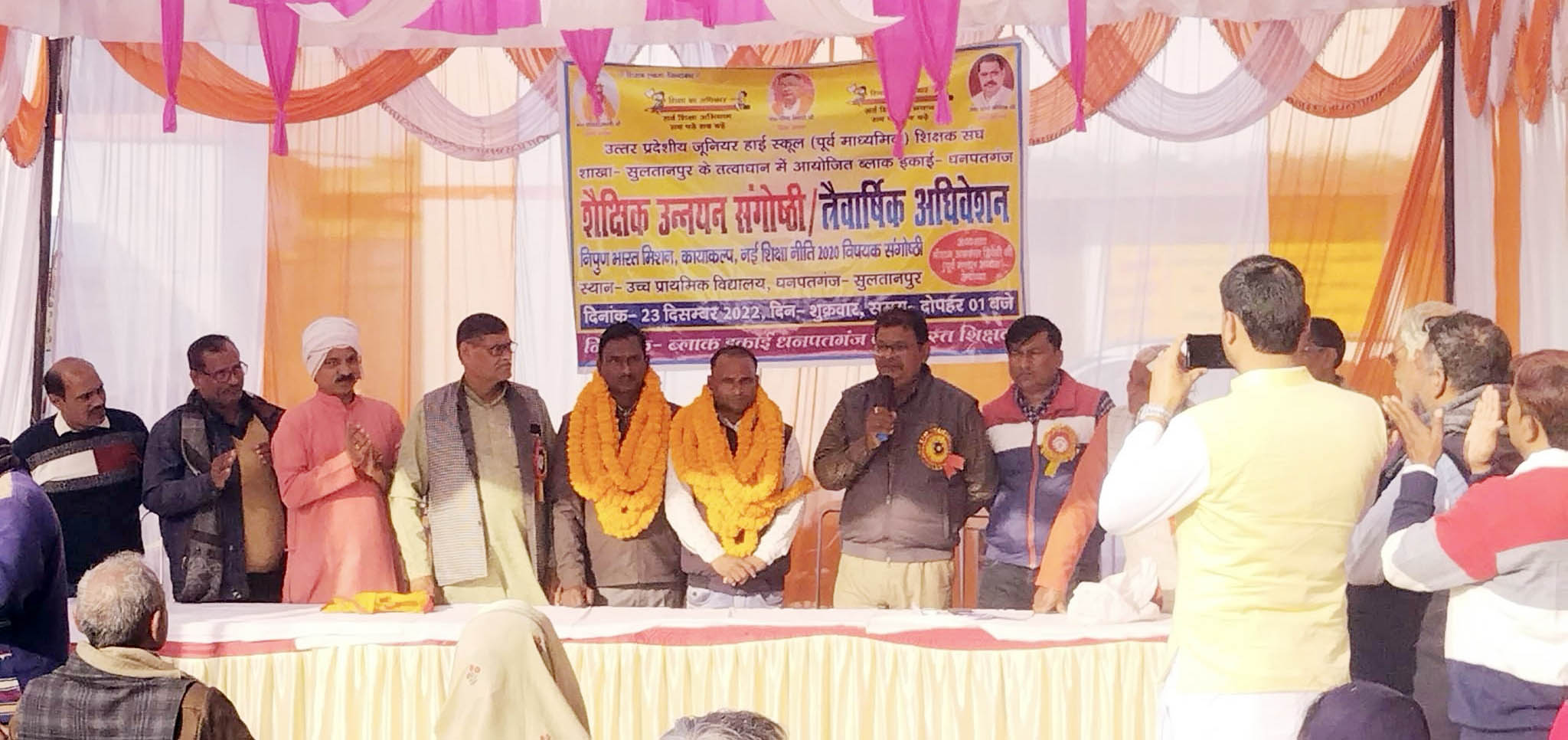 चुनाव को लेकर हुई बैठक में बतौर पर्यवेक्षक मौजूद रमाशंकर तिवारी और राम आधार ने निर्विरोध निर्वाचित सभी पदाधिकारियों के नामों की घोषणा की। इस दौरान जिला शिक्षक संघ के अध्यक्ष अनिल, अशोक मिश्र, देवेंद्र कुमार, चंद्रभान, विजय प्रताप सिंह, शशिकांत एवं धनपतगंज में जूनियर शिक्षक संघ के नवनिर्वाचित पदाधिकारीगण मौजूद रहे। कार्यक्रम का संचालन जितेंद्र तिवारी ने किया। पूर्व मंडल अध्यक्ष राम इकबाल द्विवेदी ने निर्वाचित अध्यक्ष के पूर्व के कार्यकाल की सराहना की। उन्होंने उम्मीद जताई कि वह आगे भी शिक्षकों के हित में कार्य करेंगे। नवनियुक्त ब्लॉक अध्यक्ष नवीन पांडे ने कहा कि वह किसी भी शिक्षक के सम्मान को कहीं से भी ठेस नहीं पहुंचने देंगे। शिक्षकों ने मेरे ऊपर जो विश्वास कायम किया है। पुरानी पेंशन बहाल को लेकर लड़ाई जारी रहेगी। किसी भी शिक्षक अनावश्यक उत्पीडऩ बर्दास्त नही किया जाएगा।