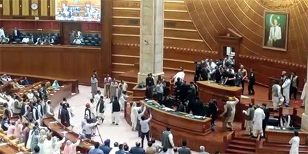 सत्र की शुरुआत के साथ सदन में पहले से तैयारी कर बैठे पीटीआई नेताओं ने हंगामा मचाना शुरू कर दिया। नेशनल एसेंबली में अविश्वास प्रस्ताव के लिए पीटीआई छोड़कर विपक्षी खेमे में गए नेताओं पर हमला बोलकर पीटीआई नेताओं ने शोर मचाना शुरू कर दिया। जब डिप्टी स्पीकर ने पीटीआई नेताओं को ऐसा करने से रोका तो वह डिप्टी स्पीकर मजरी पर लोटा फेंकने लगे। यही नहीं वेल पर जाकर डिप्टी स्पीकर की पिटाई कर दी गई। उनके बाल तक खींचे गए। इसके चलते विधान सभा परिसर में जमकर हंगामा मचा।